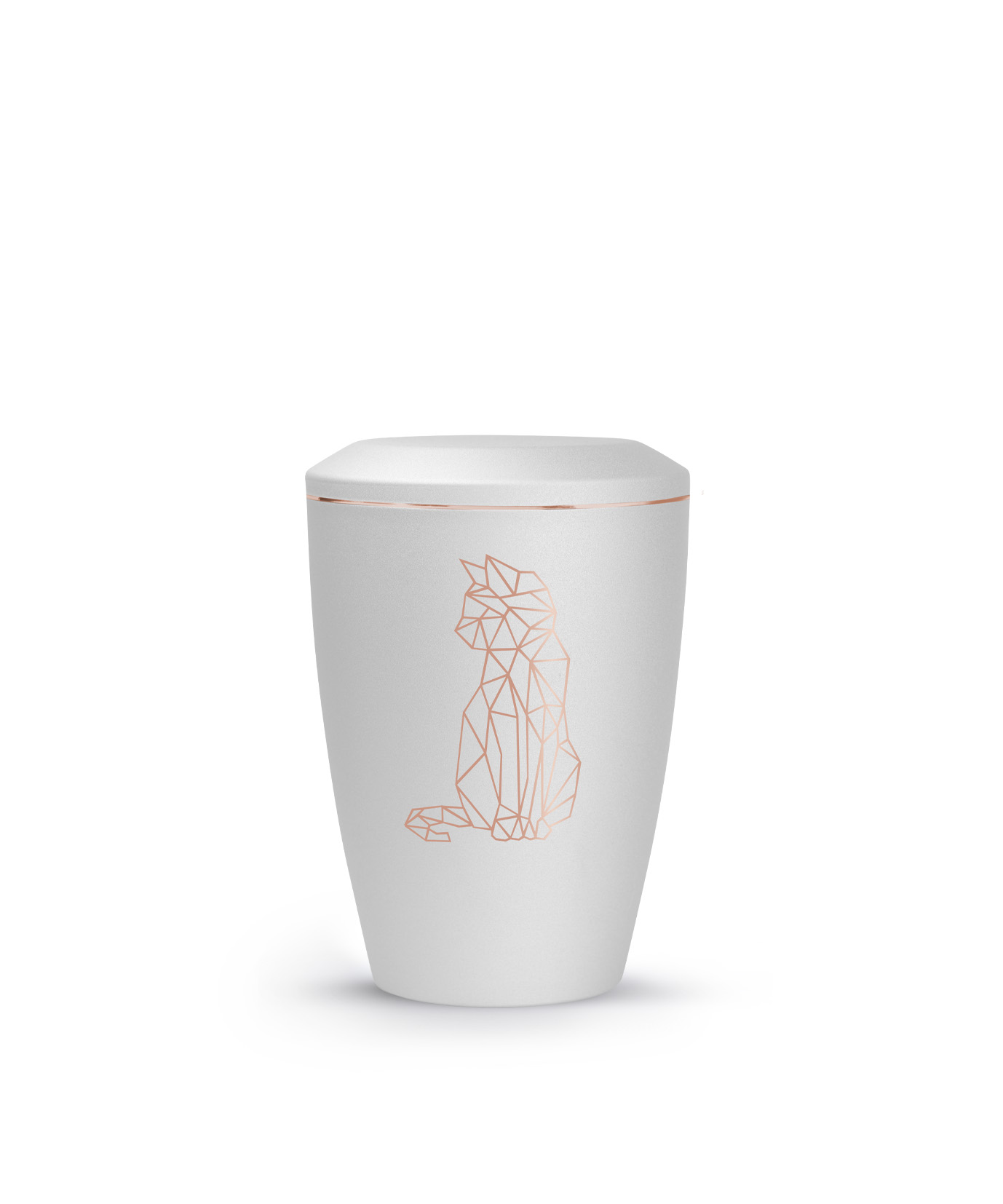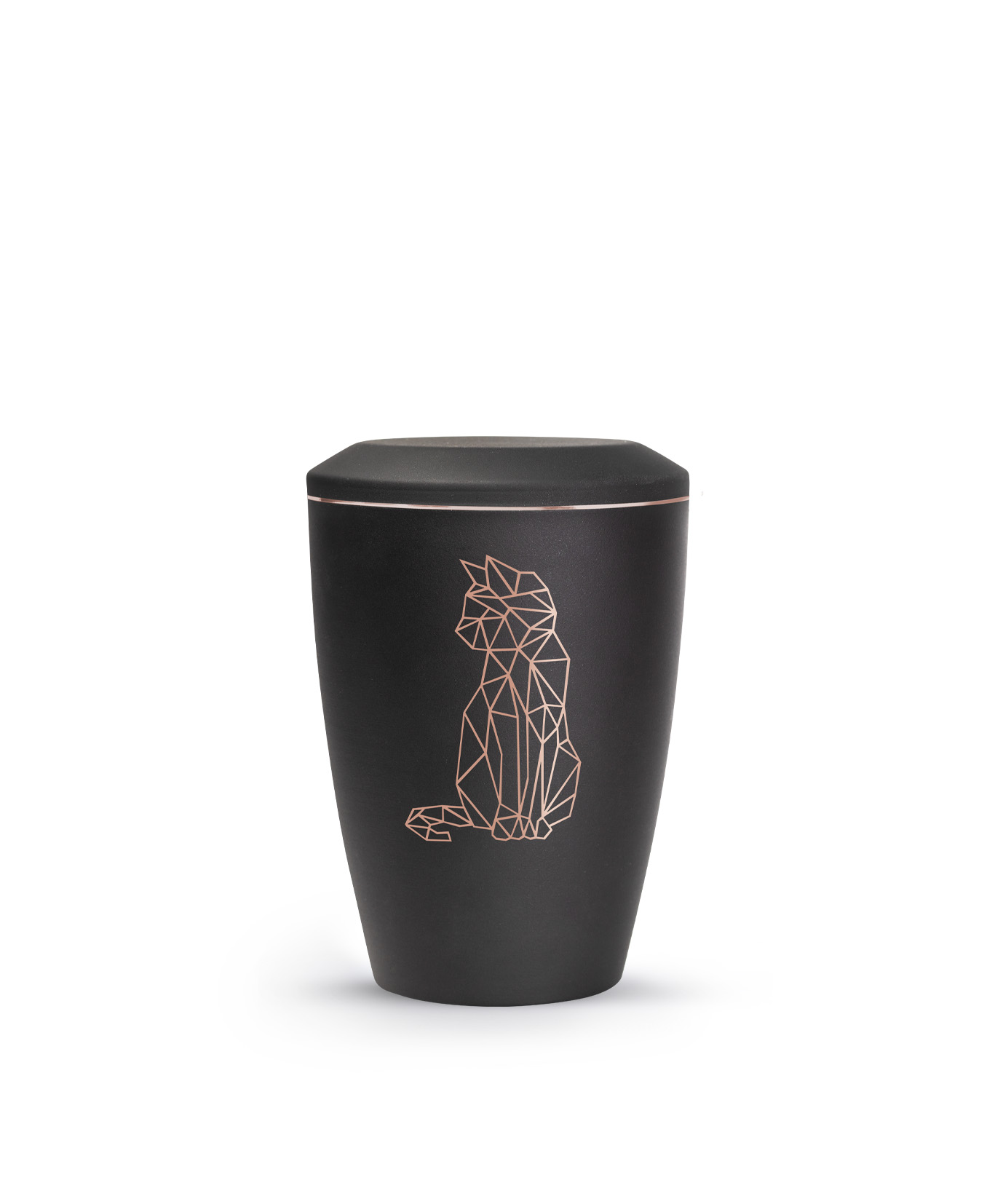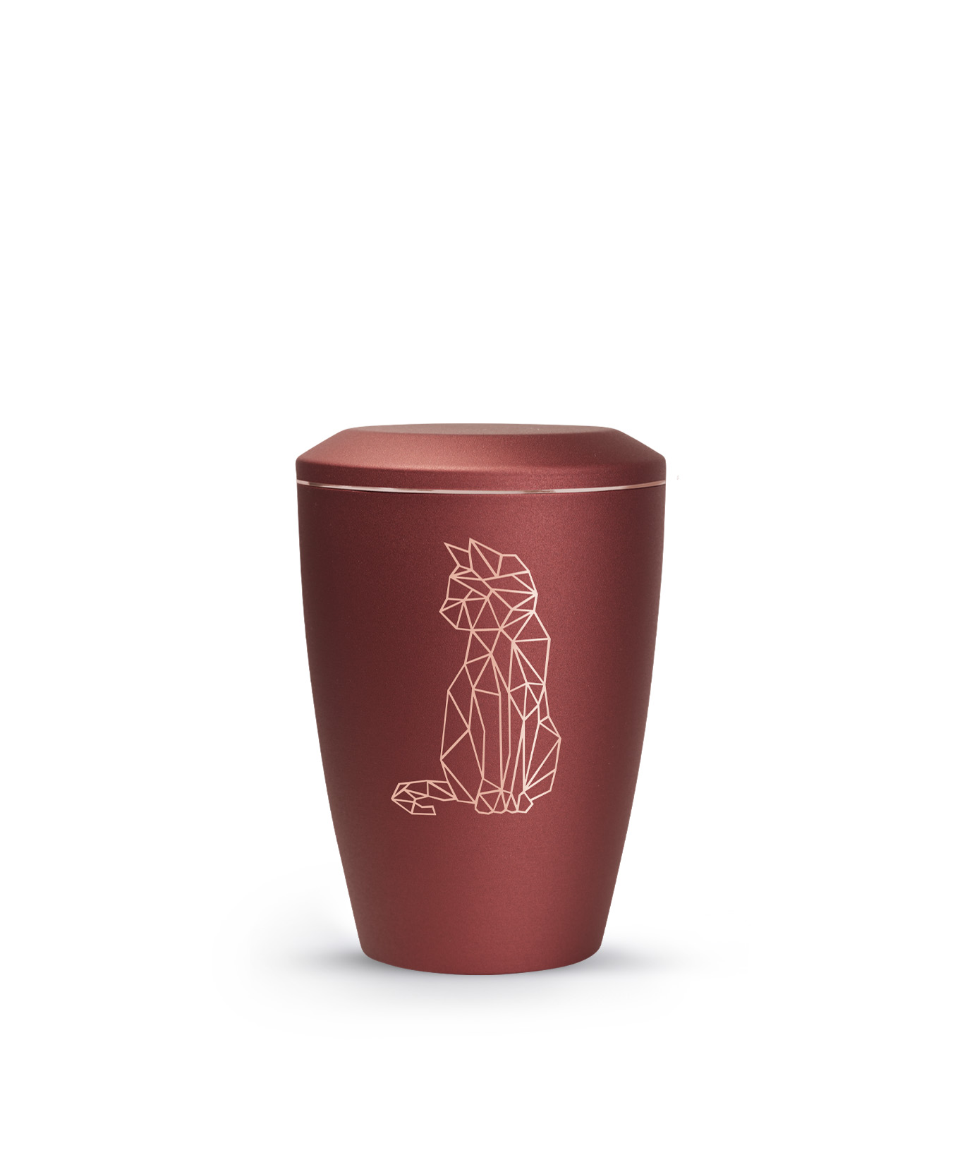 Diese Tierurne aus Metall der Edition Karat mit einer matt seidig schimmernden Oberfläche mit einem geometrischen Katzenmoitv ist in 6 verschiedenen Farben erhältlich. Verziert wird die Urne mit einem zarten kupferfarbenen Zierstreifen. Das hochwertige geometrischen, kupferfarbenen Motiv macht Ihre Urne zum Unikat. Dieses Urnenmodell für Katzenliebhaber ist nur erhältlich in der Größe 0,5 Liter .