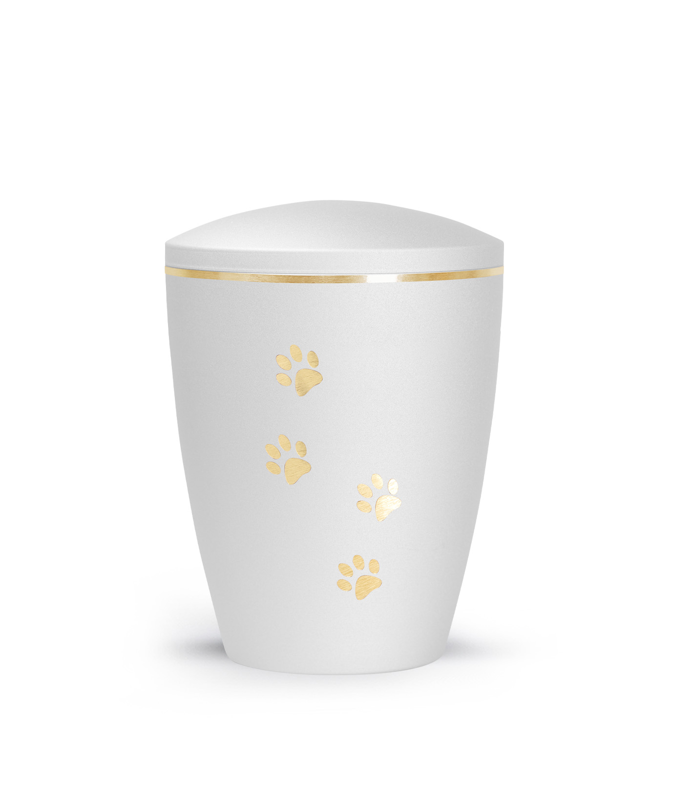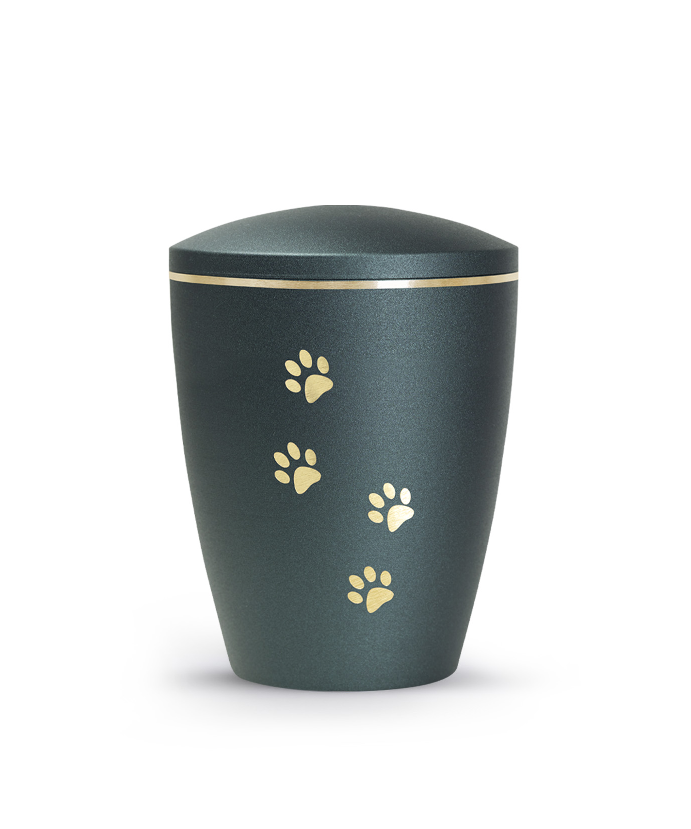 Die Edition Patas Tierurnen sind eine stilvolle und zeitlose Wahl für die Aufbewahrung der Asche von Ihrem geliebten Fellkind. Mit ihrer eleganten und matt schimmernden Oberfläche und der Verzierung mit vier gold gebürsteten Pfoten und einem gold gebürstetem Zierband, ist jede Urne ein Unikat und ein würdiges Andenken an Ihr vierbeiniges Familienmitglied. Die Patas Tierurne ist erhältlich in 8 wunderschönen Farben und 3 verschiedenen Größen, diese eigenen sich für alle Tierarten nicht nur für Hunde und Katzen, nein sondern auch für Vögel bis hin zu Kleintieren. Die Edition Patas Tierurnen sind sorgfältig von Hand gefertigt und stehen für Qualität und Haltbarkeit.