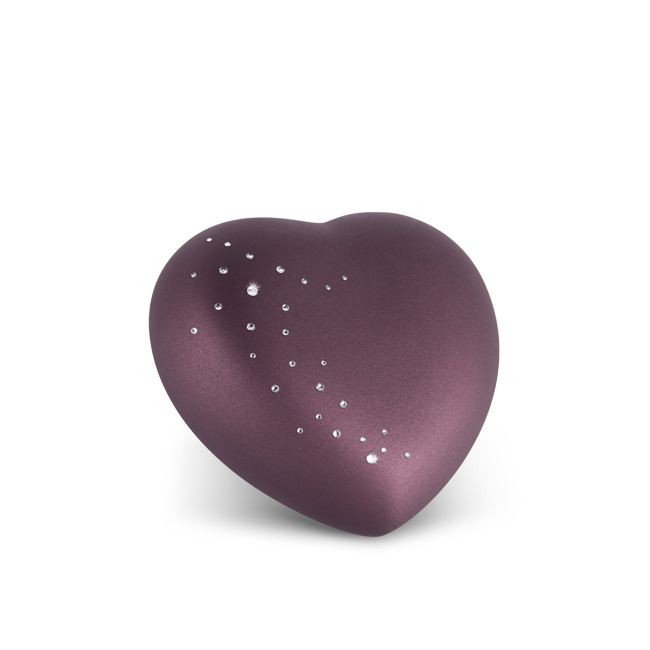 Keramikurne Herz mit Sternenschweif aus hochwertigen Kristallen Farbe: Berry versch. Größen